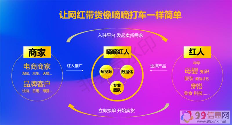 但嘀嘀红人的商业模式,相对电商而言是非常新颖时尚的,商家能自主发布产品需求,平台智能AI匹配,红人在线接单,后台可实时数据更新,两者完全不怕没有符合的资源9+9+x+i+n+x+i+n+e+t。去年双十一薇娅一天带货30亿,截止到2020年一月份,嘀嘀红人平台已为6698+品牌成功交易12.3亿。平台优选8大品类 涵盖美妆个护、玩具母婴、服饰箱包、生活家居、食品饮料、日用家纺、果蔬生鲜、数码家电等八大商品品类9_9_信_息_网。